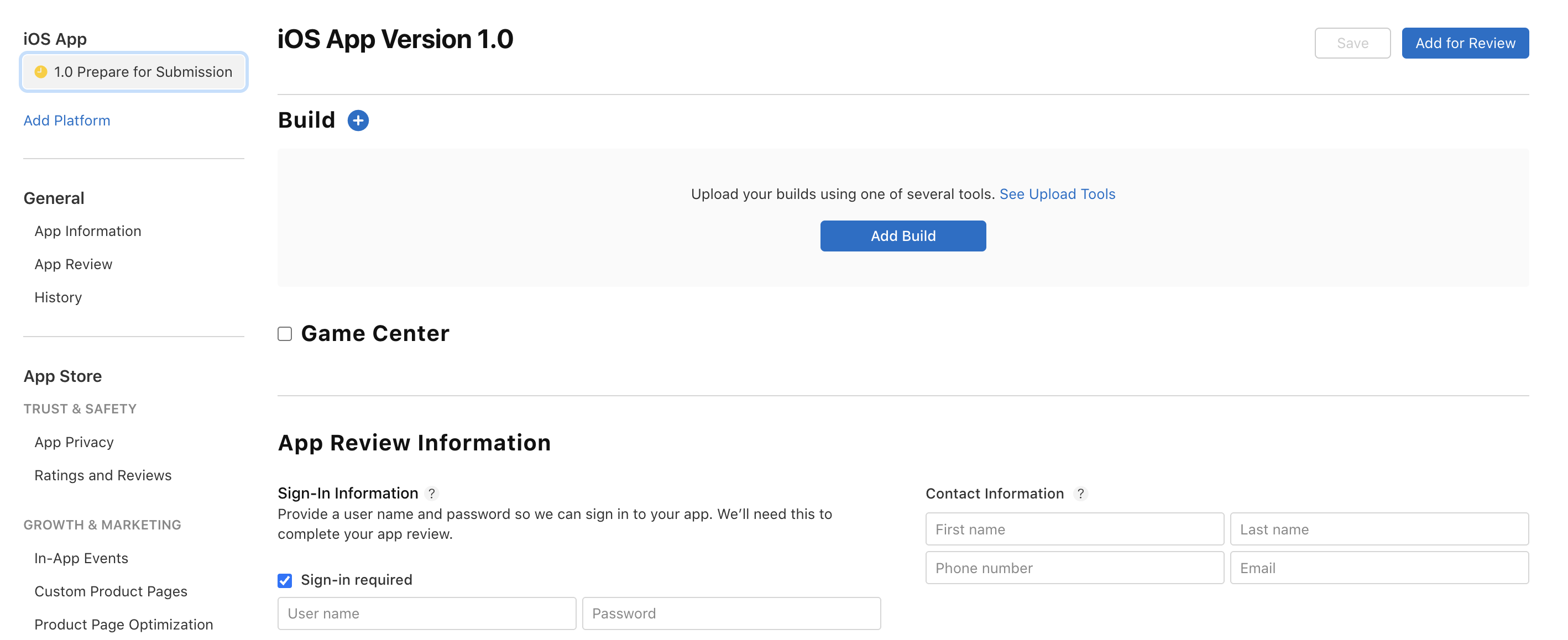 - Scroll down the “Prepare for Submission” tab to find the Build section.