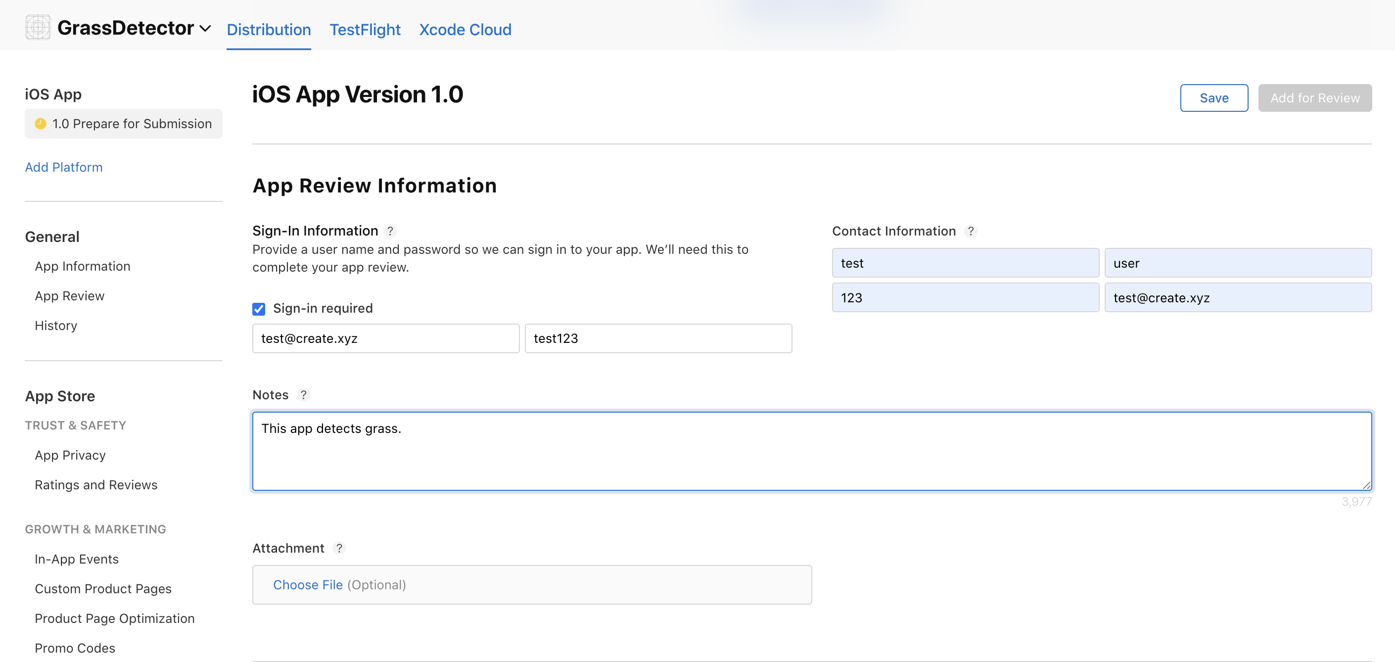 - If Sign-In is required for your app, please provide an example account for Apple to login to.