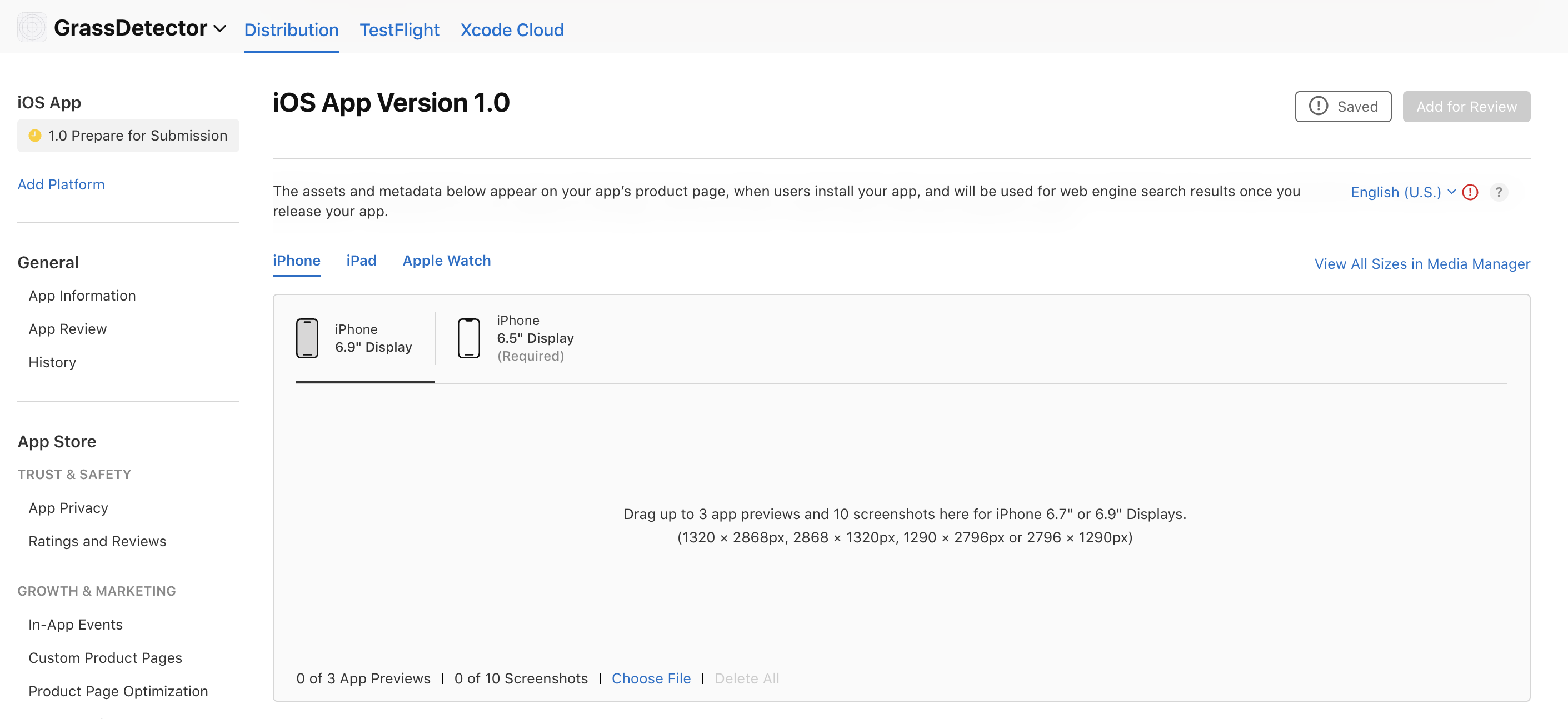 - Upload screenshots for iPhone (6.5” and 5.5” displays)